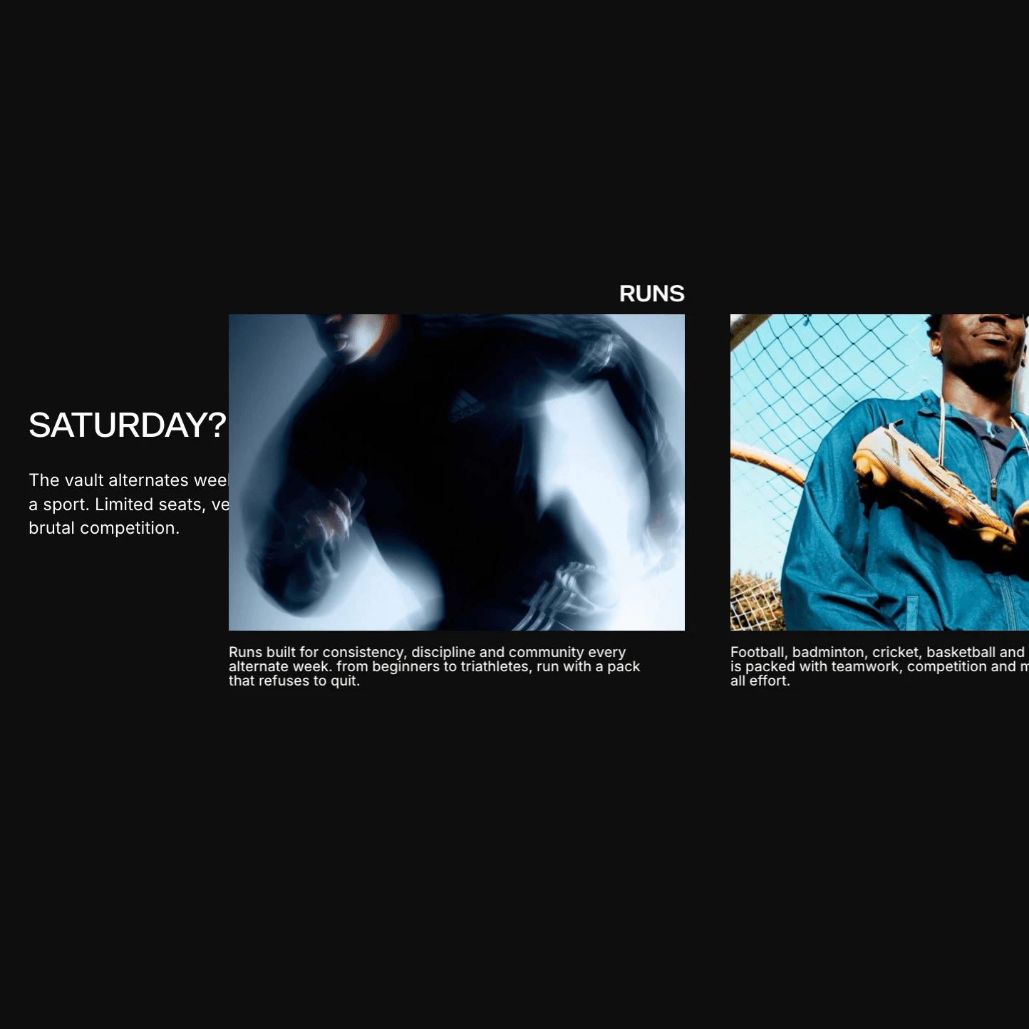 The website and branding were built on the core beliefs and values of Vault, and the pain/pleasure points of the club's target audience were kept in mind. The aim was to bring the unapologetic and "fight club" demeanour to all creatives and copy.
